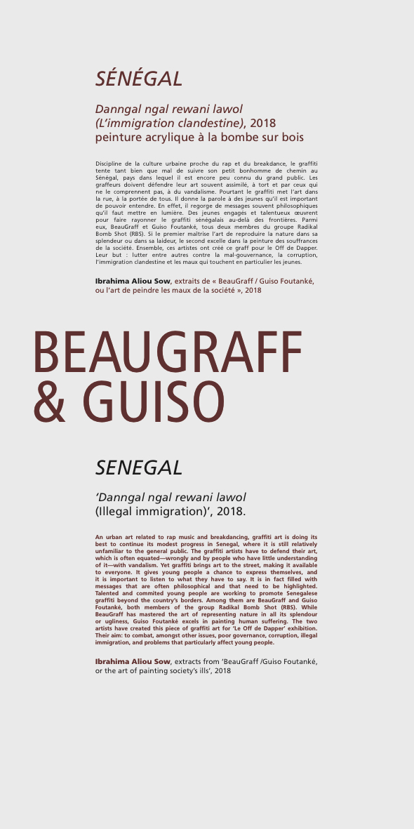 Conception de 8 panneaux signalétiques pour le OFF de la Fondation Dapper sur l’île de Gorée pour la 13e Biennale de Dakar.